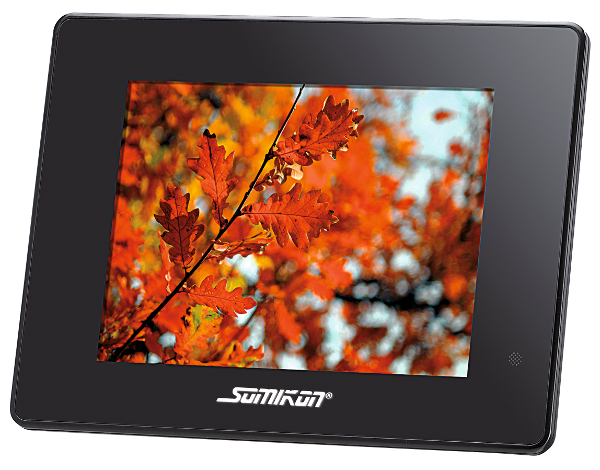 Der digitale Bilderrahmen Excelsior von Somikon vereint drei wichtige Eigenschaften: Er ist groß, zeigt ein hoch aufgelöstes Bild und ist dabei noch preiswert. Auf seiner Displayfläche tummeln sich 800 x 600 Pixel, was ein sehr guter Wert ist: So sehen die Fotos scharf und feinkörnig aus. Der Bilderrahmen wird für etwa 80 Euro angeboten, was in Anbetracht seiner Größe und Auflösung ein vergleichsweise niedriger Preis ist. Zudem ist der Excelsior ein TFT-Monitor, der ein brillanteres Bild zeigt als ein herkömmlicher LCD-Bildschirm.