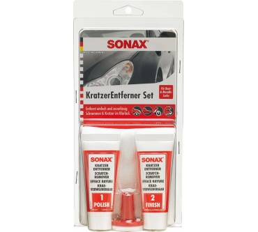 Das Sonax KratzerEntferner Set ist ein Politurenset zur manuellen Beseitigung von lokalen Kratzern und Schrammen aus Klarlacken. Es eignet sich für Bunt- und Metallic-Lacke sowie kratzbeständige Lacke und kann auf Autos, Motorrädern und Booten verwendet werden. Das Set enthält 25 ml Polish 1, 25 ml Finish 2, 4 Schleifblüten (Körnung P5000), 3 Poliervliese und 1 Polierstempel. Die Anwendung erfolgt in drei Schritten: Anschleifen, Vorpolieren und Finish. Bei tiefen Kratzern ist ein behutsames Anschleifen erforderlich, gefolgt von Vorpolieren mit Polish 1 und abschließendem Finish mit Polish 2, um den gewünschten Oberflächenglanz zu erzielen. Es wird empfohlen, das Produkt vor Frost zu schützen.