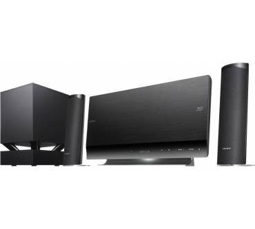 Um das elegante Heimkino-System kabellos mit dem Internet zu verbinden, ist allerdings ein separater WLAN-Adapter erforderlich. Der Hersteller selbst empfiehlt in diesem Zusammenhang den Sony UWA-BR100, der bei diversen Internet-Händlern für knapp 65 Euro angeboten wird. Multimedia-Inhalte vom eigenen PC lassen sich per DLNA zur Anlage senden und können anschließend auf einen angeschlossenen Fernseher gestreamt werden. Für sonstige externe Zuspieler stehen darüber hinaus eine USB-Schnittstelle und zwei HDMI-Eingänge zur Verfügung. Im Lieferumfang enthalten ist obendrein eine praktische Dockingstation, mit der sich alle gängigen iPods und iPhones an das Heimkino-System anschließen lassen. Wer möchte, kann seinen Apple-Player sogar als Fernbedienung einsetzen. Das optische Laufwerk skaliert DVDs in gewöhnlicher Standard-Auflösung auf bis zu 1080p und kann zusätzlich Blu-rays abspielen, die im 3D-Verfahren aufgenommen wurden. Handelsübliche Audio-CDs werden natürlich ebenfalls unterstützt. Für den guten Ton sorgen ein Subwoofer und zwei kompakte Säulenlautsprecher, über die der Hersteller leider keine weiteren Angaben macht. Ferner decodiert das 2.1-System laut Datenblatt die HD-Tonformate Dolby TrueHD, DTS-HD Master Audio und DTS-HD High Resolution Audio.