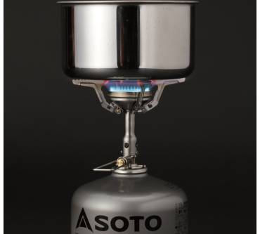 „... auf den recht stabilen Topfstützen stehen volle 2-Liter-Pötte sicher. Die punktuelle Flamme des Soto ist weniger windempfindlich als breiter feuernde Brenner, ein Windschutz ... lohnt sich dennoch: Er verringert bei Wind die Kochzeit, spart Brennstoff und holt so seine Anschaffungskosten wieder rein.“