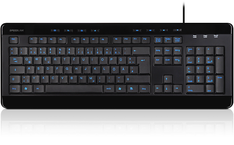 Zur weiteren Ausstattung der SpeedLink gehören ferner noch sieben Schnellzugriffstasten für Internetanwendungen (Browser, E-Mail) sowie – zumindest rudimentär – zur Steuerung eines Media-Players. Das Format wiederum entspricht dem einer Standard-Volltastatur. Den Käufern zufolge zeichnet sich das Keyboard ferner auch noch durch eine gewisse Robustheit und damit Langlebigkeit aus, lediglich der Druckpunkt findet nicht bei allen Zustimmung, da er zu wenig definiert sei. Zumindest anfänglich sind daher gelegentliche Vertipper geradezu vorprogrammiert.