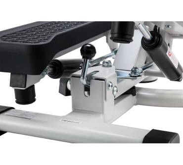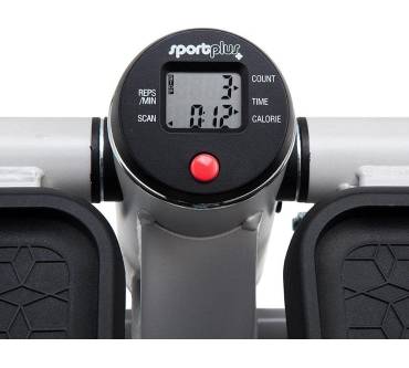 Beim SportPlus SP-MSP-005 können Sie zwischen zwei Step-Modi wählen: gerades Auf- und-Ab und Swing-Step-Modus, bei dem die Trittflächen auch noch leicht zur Seite schwingen – viele Stepper beherrschen nur die eine oder andere Bewegungsart. Die Pedale müssen dazu auf einer Höhe ausgerichtet sein, dann kann man einen Hebel umlegen und das Training ändern. Was manche Käufer jedoch vermissen ist eine einstellbare Tritthöhe: Diese ist mit knapp 30 Zentimeter recht hoch festgelegt. Und im Gegensatz zu vielen anderen Steppern kann man den Trittwiderstand leider auch nicht verändern. Abgesehen davon überzeugt das Gerät mit einer robusten Bauweise, festem Stand und moderaten Betriebsgeräuschen. Das kleine Display zeigt die Schrittanzahl, den Kalorienverbrauch und die Trainingszeit an. Leider verfügt der Stepper über keine elastischen Zugbänder, wie beispielsweise der Ultrasport Swing Stepper, daher werden die Arme nur locker mitgeschwungen.