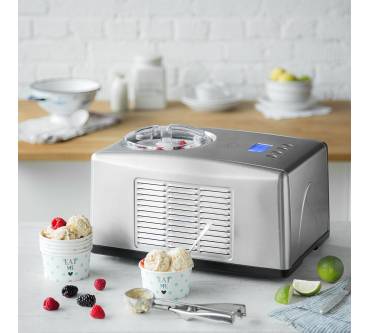 Komfortabler geht es mit dem Unold Profi 48870: Er hält gleich drei Automatikprogramme bereit, hat ein Fassungsvermögen von bis zu 2 Litern und gibt per Signalton die Fertigstellung der Eiszubereitung an. Das Modell erringt im Vergleich des ETM Testmagazins von acht Kompressor-Eismaschinen den ersten Platz und wird „Testsieger 2017“.