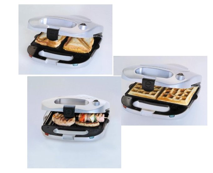 Das Multifunktionsgerät wird mit drei Einsätzen aus Alu-Guss ausgeliefert, die sich jeweils mit einem Handgriff auswechseln lassen. Der Steba verwandelt sich dabei ruckzuck von einem Sandwichtoaster wahlweise zu einem Waffeleisen oder zu einem Kontaktgrill. Kunden bestätigen ihm eine solide Arbeitsleistung in allen drei Disziplinen. Als Manko wird ab und an die fehlende Anzeige des Betriebsendes moniert, speziell beim Waffeln ausbacken kann dies anfänglich recht lästig sein, da der Fortschritt von Hand überwacht werden muss. Hat man den Dreh jedoch einmal raus, gelingen auch die Waffeln ohne Schwierigkeiten. Ein viele größeres Problem stellt daher für etliche Benutzer die Bauform des Gehäuses dar. Bei der Konstruktion wurde nämlich nicht darauf geachtet, das Gehäuse möglichst ohne kleine Ritze und Schlitze zu designen. Die Folge: Läuft aus Versehen Käse oder Waffelteig über den Rand heraus, sammelt sich dieser in den kleinen Ritzen, aus denen er anschließend mühsam herausgepuhlt werden muss. Dem lässt sich natürlich vorbeugen, indem Toastscheiben nicht allzu üppig belegt werden, und auch die Menge des Waffelteigs sollte genau kalkuliert werden – damit nichts übertreten kann. Einige Kunden bemängeln ferner auch die Haltbarkeit der Antihaftbeschichtung. Sie soll sich bereits nach kurzer Zeit ablösen, was natürlich auf Dauer die Reinigung der entnehmbaren Aluguss-Platten ebenfalls erschwert.