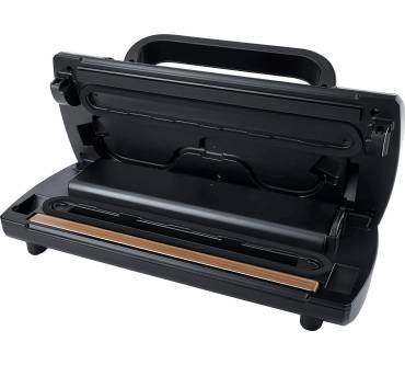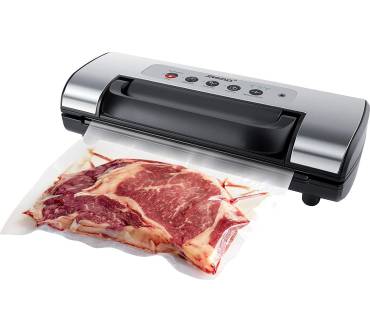 Der leistungsstarke Vakuumierer eignet sich mit seiner effektiven Absauggeschwindigkeit von 12 Litern pro Minute ideal für häufige und längere Vakuumiervorgänge. Der Langzeitbetrieb ohne Pause ist bedenkenlos möglich. Die Einhand-Bedienung und der Handgriff gewähren den nötigen Komfort auch bei längeren Arbeitsvorgängen. Es können Folien und Beutel mit bis zu 30 Zentimetern Breite und beliebiger Länge verwendet werden. Das Absaugen und Versiegeln erfolgt vollautomatisch, es wird dabei ein maximaler Unterdruck von 0,8 bar erzeugt. Für trockene Inhalte wählen Sie die einfache Versiegelung. Bei feuchten oder marinierten Lebensmitteln haben Sie eine doppelte Schweißnaht-Funktion zur Verfügung, die für mehr Auslauf-Sicherheit sorgt. Darüber hinaus steht Ihnen ein Anschluss inklusive Vakuumierschlauch zum Vakuumieren in Behältern zur Verfügung. Ein praktischer Folienschneider gehört ebenfalls zur Ausstattung. Dank der entnehmbaren Vakuumierkammer gelingt die Reinigung leicht.