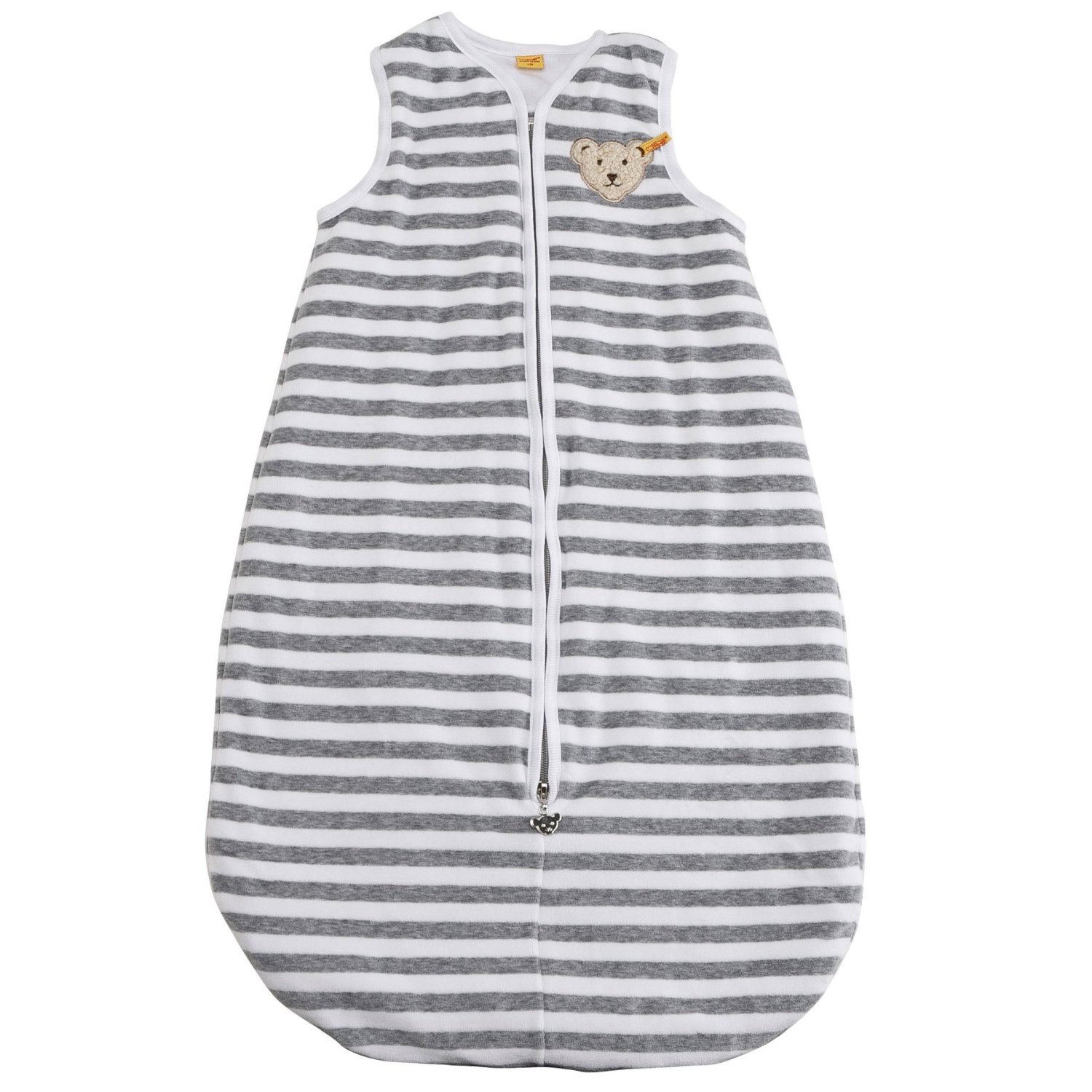 Dass der weiche Stoff bei Eltern keine Wünsche offen lässt, darf beim Steiff als beinahe gesichertes Wissen gelten. Dies legen jedenfalls die zahlreichen Käufermeinungen nahe, die den Babyschlafanzug mit seinem Obermaterial aus Nicky und dem Jersey-Innenfutter in allen Facetten lobten. Der Wärmewiederstand sei optimal für das ganze Jahr – im Sommer ohne, im Winter mit Langarmbody darunter. Auch nach vielen Wäschen sei er weder eingelaufen noch habe er an der Leuchtkraft der Farben eingebüßt. Beifall aus den Reihen begeisterter Eltern gab es auch für das niedliche Äußere – nicht unwichtig für den Anblick es schlafenden Nachwuchses – für die feinen Streifen ebenso wie für die Teddyapplikation im Brustbereich. Die Angst vor ablösbaren oder verschluckbaren Kleinteilen ist dank der guten Verarbeitung allerdings nicht begründet.Fazit: Als Ganzjahresbegleiter ist der Steiff ohne Weiteres zu empfehlen. Wer ihn bei Amazon bestellt, muss allerdings etwas mehr investieren (je nach Größe zwischen rund 45 und 50 EUR), hat dann aber einen Ganzjahresschlafsack, der viele Monate hält und auch nach vielen Wäschen seine Qualität behält. Farbwünsche lassen die Auswahl unter mehreren Streifen-Dessins zu.