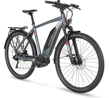 Mit dem E-6X Tour schickt Stevens einen echten Preis-Leistungs-Knaller ins Rennen. Spielraum haben Sie vor allem im Gelände, denn mit 75 mm Federweg schluckt die Gabel deutlich mehr weg als der Marktdurchschnitt seiner Klasse. Beim Performance-Line-Motor handelt es sich um die gezähmte Variante des sportlichen CX-Aggregats von Bosch – kann zupacken, gilt im Testumfeld aber unterm Strich als kultiviert. Das montierte Kiox-Display – neu bei Bosch – macht das Stevens für Fitnessorientierte und Herzpatienten interessant: Über Bluetooth können Sie beispielsweise einen Brustgurtsensor koppeln und Ihre Herzrate im Blick behalten. Auch die Fahrdaten lassen sich erfassen und über die eBike Connect-App speichern. Viele Modelle auf diesem Preisniveau sind noch mit dem simplen Intuvia-Display ausgestattet. Nur beim Akku gibt sich das Stevens konventionell. Denn während die Konkurrenz auf diesem preislichen Niveau allmählich auf Boschs neuen Powertube mit 625 Wh umrüstet, wird das E-6X Tour noch mit 500 Wh großem Energievorrat geliefert. Damit erfüllt es aber immer noch den (guten) Standard am Markt. Planen Sie die Anschaffung für den Alltag und können Sie zwischendurch auch mal auf die Volle-Möhre-Stufe verzichten, sind auch ausgiebige Touren mit längeren Anstiegen drin.