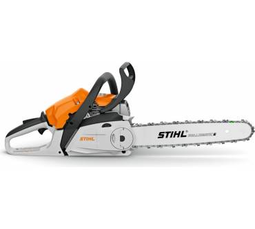 Die Benzin-Kettensäge von Stihl ist eine nähere Betrachtung für Hobbyanwenderinnen- und -anwender wert, die Rückschnittarbeiten im Garten oder gröbere Sägearbeiten am Bau zu erledigen haben. Die Aufbereitung von Brennholz gehört ebenfalls zu den möglichen Einsatzbereichen. Zu haben ist die Säge wahlweise mit einem 30- oder 35-Zentimeter-Schwert. Das verbaute Einzylinder-Zweitaktaggregat bringt es auf eine Leistung von 2,2 PS. Das Starten des Motors erledigen Sie dank der Startunterstützung mit reduziertem Kraftaufwand. Ein spezieller Vergaser hält die Sägeleistung auch dann auf einem konstanten Niveau, wenn das Ansaugen von Luft durch einen verschmutzten Luftfilter erschwert wird. Die Wartungsintervalle werden auf diese Weise verlängert. Den Füllstand des Kettenöls behalten Sie dank des transparent gestalteten Öltanks im Blick. Das Nachspannen der Kette ist mit geringem Aufwand ohne Montagewerkzeug möglich. Die Säge ist in einer abgespeckten Version ohne Startunterstützung und mit einer etwas aufwändigeren Kettenspannung erhältlich.