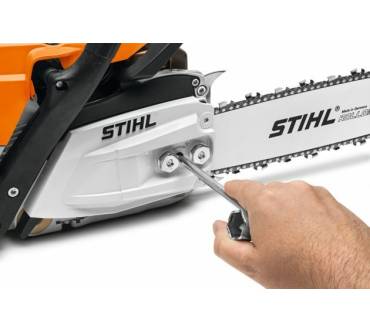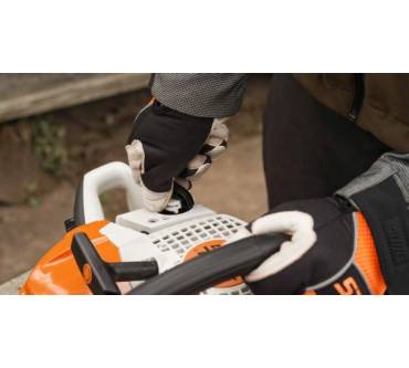Die Motorsäge ist ideal zum Entasten und kann laut Hersteller auch zum Fällen kleinerer Bäume verwendet werden. Bei Starkholz über 40 cm Durchmesser geht jedoch nichts mehr, dafür ist sie aber auch nicht ausgelegt. Die Kettengeschwindigkeit ist mit 24,8 m/s ziemlich hoch und laut Fachmagazin auf einem Niveau, das selbst einige Profisägen der Wettbewerber nicht erreichen. Sehr praktisch sind die transparenten Tanks und ihre werkzeuglosen Verschlüsse, die sich somit auch mit Handschuhen gut bedienen lassen. Auch die Öffnungen sind ausreichend groß, um die Säge möglichst schnell und bequem zu betanken. Für Sicherheit sorgt der Kombi-Starthebel mit vordefinierten Positionen, was ein unbeabsichtigtes Starten verhindert. Sie lässt sich unkompliziert starten, egal ob im kalten oder warmen Zustand. Weniger schön ist das Fehlen einer einstellbaren Ölpumpe und dass es kein Kettenführungsblech gibt. Insgesamt aber eine sehr durchdachte und gute Säge, die nur zu viel kostet.