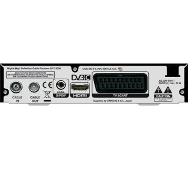 Multimedia-Dateien sind gut und schön, aber natürlich nicht alles: Weil er den MPEG4-Codec unterstützt, empfängt der Receiver neben Sendern in SD-Auflösung (576i) auch HDTV-Programme mit 720p- oder 1080i-Auflösung. Pay-TV-Sender bleiben mangels CI-Slot oder Smartcard-Reader außen vor. Die Rückseite ist mit einem Antenneneingang, mit einem Antennenausgang zum Durchschleifen des Signals, mit einem HDMI-Ausgang für Flachbildfernseher oder Projektoren, mit einem Scart-Ausgang für ältere Geräte sowie mit einem koaxialen Digitalausgang für Heimkinosysteme ohne HDMI-Eingang besetzt. Einen analogen Audio-Ausgang hat das Unternehmen nicht verbaut. In Sachen Bedienkomfort wirbt Strong unter anderem mit acht Favoritenlisten zur individuellen Organisation der Sender und mit einem achtfachen Timer, der sich einmalig, täglich, wöchentlich oder monatlich programmieren lässt.Ab Werk spielt der SRT 3000 ausschließlich Multimedia-Dateien per USB, nach einem Update nimmt er auch Sendungen auf. Wie es in dieser und in anderer Beziehung um den DVB-C-Receiver steht, etwa bei den Umschaltzeiten, werden die Tests der Fachmagazine zeigen.
