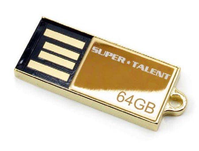 Super Talent hat die seit einigen Jahren im Sortiment geführten Mini-USB-Sticks der Pico-Serie um ein 64 GB-Modell erweitert, das zudem in einer Sonderedition verkauft wird. Der Pico-C ist nämlich mit einer (vermutlich) hauchdünnen Schicht aus 24-karätigem Gold überzogen, was ihn, und dieses kleine Wortspiel trifft nun buchstäblich auf ihn zu, zu einem goldigen 64-GB-USB-Stick macht. Laut Hersteller ist er derzeit sogar der weltkleinste 64-GB-Stick.
