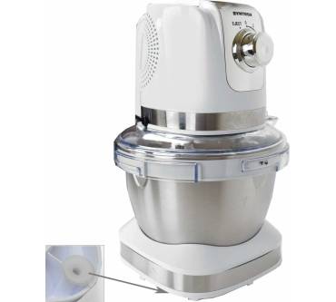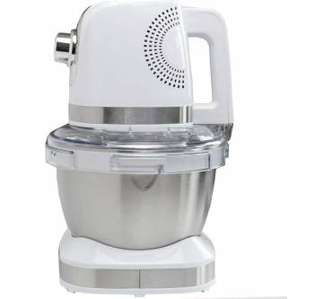 Die kompakte Küchenmaschine mit Bajonettverschluss unterstützt Sie beim Mischen, Rühren, Kneten und Schlagen. Sie bietet eine große 4-Liter-Edelstahlrührschüssel mit Deckel, welcher Spritzer verhindert. Er besitzt eine praktische Nachfüllöffnung zum Ergänzen von Zutaten. Darüber hinaus gehören Teigwerkzeuge wie Knethaken, Rührhaken und Schneebesen zur Ausstattung. Der Knethaken eignet sich für schwere Teige und anspruchsvolle Knetarbeiten, wie zum Beispiel Brotteige. Der Rührhaken dient zum Mixen leichterer Teigarten. Mit Hilfe des Schneebesens gelingt das mühelose Aufschlagen von Sahne, Eischnee und luftigen Desserts. Es stehen insgesamt zehn Geschwindigkeitsstufen zur Verfügung, damit Sie individuell auf Ihre Zubereitungen eingehen können. Rutschfeste Gummifüße am Boden der Maschine sorgen für einen festen Stand. Alle Zutaten werden Nutzern zufolge gleichmäßig erfasst und auch größere Mengen bewältigt die Maschine problemlos. Die Reinigung ist ebenso einfach wie die Bedienung, das entnehmbare Zubehör ist spülmaschinengeeignet.