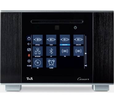 Ist der Hi-Fi-Receiver T + A Caruso R aufgebaut und angeschlossen, lässt sich darüber fast alles anhören. Digitaler und analoger Radioempfang sowie ein CD-Spieler sind direkt integriert. Dank zweier digitaler Audio-Eingänge lässt sich auch der Fernseher unkompliziert einbinden. Leider finden sich abgesehen davon nur zwei weitere Audio-Eingänge - Phono gibt es gar nicht. Neben der eher luxuriösen Preisgestaltung mit deutlich über 2.000 Euro ist das im Grunde die einzige Schwachstelle. Denn an weiteren Abspielmöglichkeiten mangelt es dennoch nicht. Mit Bluetooth, WLAN und den zahlreichen Streaming-Apps sowie der Einbindung ins eigene Netzwerk per dlna lässt sich auf fast alles zugreifen. Der nicht selten umständliche Umweg über eine App für die Bedienung der zahlreichen Funktionen darf dank des großen und berührungsempfindlichen Displays entfallen. Dann fehlen nur noch ebenso kostspielige Lautsprecher, um die hochwertige Klangausgabe entsprechend umzusetzen.
