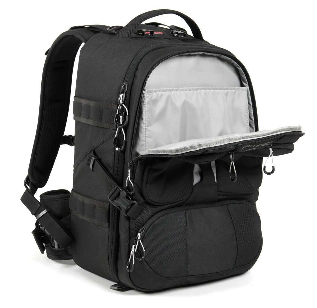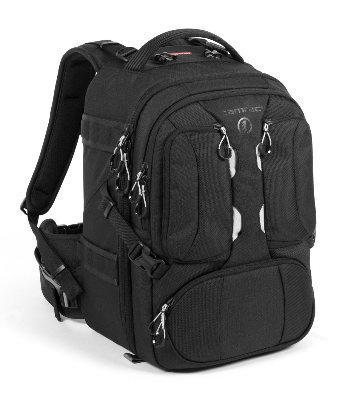 Der Rucksack gliedert sich in ein großes Hauptfach, das mit gepolsterten Trennern individuell unterteilt werden kann. Die Maße betragen 28 x 41 x 16 Zentimeter. Hinzu kommt ein Fach auf der Vorderseite und ein gepolsterter Einschub für ein 15 Zoll großes Notebook. In mehreren kleineren Fächern können zudem Ausrüstungsgegenstände wie Akkus, Filter und Speicherkarten verstaut werden.Bei den Materialien setzt Tamrac auf strapazierfähiges Nylon. Es ist laut Hersteller "wasserfest und nahezu unverwüstlich". Für schwerere Regengüsse ist der Rucksack zudem mit einem Regencover ausgestattet, das ihn auch vor Staub schützt.