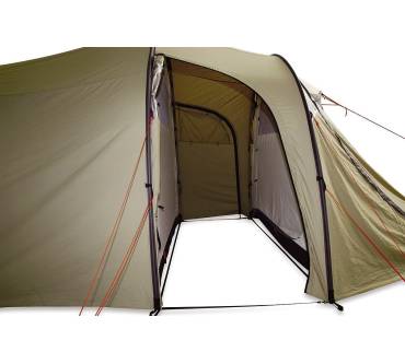 Das Family Camp von Tatonka ist ein Tunnelzelt mit ausreichend Schlafplatz für drei bis vier Personen, das unter anderem mit einem großen Vorzelt punkten kann.