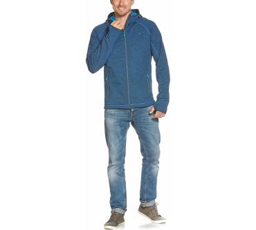 „Komfortable und sehr gut wärmende Fleecejacke, ideal geeignet für einen kälteren, trockenen Wandertag. ... steht, auch dank der Daumenschlaufen, für eine hervorragende Passform. Mit Kordelzügen in den Taschen kann die Jacke zusätzlich nachjustiert werden.“