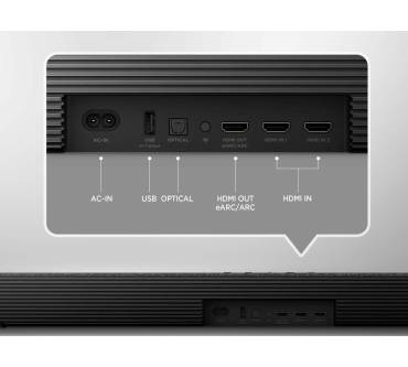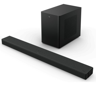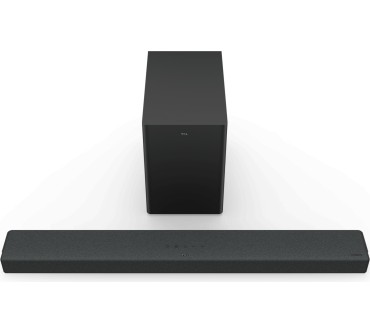 TCLs C935U kommt mit einer Soundbar, die sich mit dem beigelegten Montagematerial an die Wand anbringen lässt oder einfach auf dem Sideboard unterm Fernseher platziert wird. Weiterhin gehört ein Subwoofer zum System, den Sie dank der drahtlosen Verbindung zur Bar flexibel aufstellen können. Die Soundbar wird entweder über den HDMI-eARC-Ausgang oder über einen optischen Eingang mit dem Fernseher verbunden, HDMI-Kabel ist beigelegt. Außerdem sind zwei HDMI-Eingänge an Bord, die Sie zum Anschluss einer Spielekonsole oder eines Blu-ray-Players verwenden können. Bedient wird mithilfe der Fernbedienung, die das System in die verschiedene Klangmodi versetzen kann (Game, Standard, Sport, Music, Voice). Als Highlight kehrt der Test im Fachmagazin HiFi-Test die Dolby-Atmos-Fähigkeit hervor: Zwei der integrierten Treiber strahlen an die Decke, die den Schall wiederum zurück zum Hörer reflektiert, wodurch der Eindruck einer 3D-Beschallung von oben entsteht. Deckenhöhe und Hörplatz können allerdings nicht erfasst werden, hier müssen Sie dann doch auf teurere Exemplare mit Einmesssystem zurückgreifen. In besagtem Test hat die Atmos-Beschallung aber tadellos funktioniert. Weiterhin fällt die breite Klangbühne der Soundbar auf, die die Maße der Bar um ein Vielfaches übertrumpft. Der Subwoofer fügt sich wiederum nahtlos ins Klangbild ein und trägt andererseits auch nicht zu dick auf – klasse. Insgesamt ein starkes Paket.