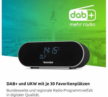 Das TechniSat DigitRadio 53 BT ist ein vielseitiger musikalischer Begleiter. Es empfängt Radioprogramme sowohl über UKW als auch DAB+. Für beide Bereiche stehen Ihnen jeweils 30 Speicherplätze für Ihre Lieblingssender zur Verfügung. Über die Bluetooth-Audiostreaming-Funktion können Sie Playlisten und dergleichen von Ihren Smart Devices abspielen. Der Einsatz auf Ihrem Nachttisch wird dadurch erleichtert, dass das Display manuell dimmbar ist und zudem über einen Lichtsensor verfügt, der die Displaybeleuchtung automatisch an die Umgebungshelligkeit anpasst.