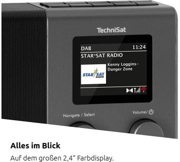 Das Techniradio 4 IR von TechniSat ist zwar dank DAB+ zukunftsfähig, empfängt aber Sender auch auf der UKW-Frequenz, so lange diese noch nicht abgeschaltet ist. Außerdem kann das Radio mit dem heimischen WLAN verbunden werden und gibt dann Sendungen von Internetradiostationen wieder. Die Lieblingssender können gespeichert werden. Die Bedienung ist einfach, denn viel eingestellt werden muss nicht. Durch die Sleep-, die Snooze- und die Weckfunktion sowie die Dimmbarkeit des Displays eignet sich das 4 IR gut für das Schlafzimmer. Der interne Mono-Lautsprecher ist mit einer Leistung von drei Watt ausreichend dafür, aber nicht partytauglich. Mehr Power und besseren Sound liefert das TechniSat Techniradio 5 IR mit zwei 5-Watt-Lautsprechern und Equalizer.