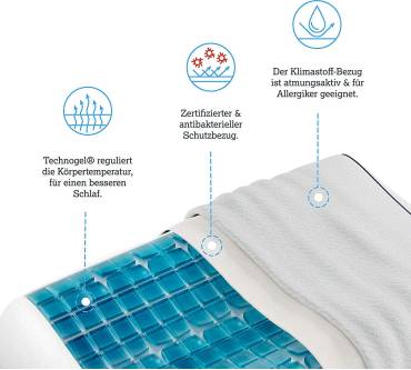 Das Technogel Anatomic ist ein ergonomisches Nackenstützkissen, das speziell für Rücken- und Seitenschläfer entwickelt wurde. Es verfügt über eine patentierte Gel-Füllung, die sich optimal an die Körperform anpasst und so für eine gleichmäßige Druckentlastung sorgt. Der Bezug besteht aus einer Mischung aus Polyester, Viskose und Elasthan und ist bis 60 °C waschbar. Das Kissen ist in verschiedenen Höhen erhältlich, um unterschiedlichen Schlafpositionen gerecht zu werden. Es ist antiallergisch und antibakteriell behandelt, was besonders für Allergiker von Vorteil ist. Allerdings ist das Kissen nicht für den Trockner geeignet und kann nicht gewaschen werden. Die Höhe des Kissens kann zwischen 7 cm und 13 cm variieren, je nach gewählter Größe.
