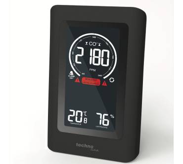 Das handliche Messgerät kann neben dem CO2-Gehalt der Luft auch Temperatur und Luftfeuchtigkeit erfassen. Um den CO2-Gehalt richtig zu deuten, hilft das große, gut lesbare Display mit dem farbigen Ampelsystem, das optisch warnt, falls die Grenzwerte überschritten werden. Das Gerät kann auch akustisch warnen, falls Sie nicht in unmittelbarer Nähe sind, um auf das Display zu schauen. Sie können die Grenzwerte individuell einstellen. Wenn Sie einen zuverlässigen CO2-Melder benötigen, können Sie bei diesem Modell nicht viel verkehrt machen. Außerdem ist der Preis gemessen an der Leistung fair und zu guter Letzt verbraucht der Technoline recht wenig Strom.