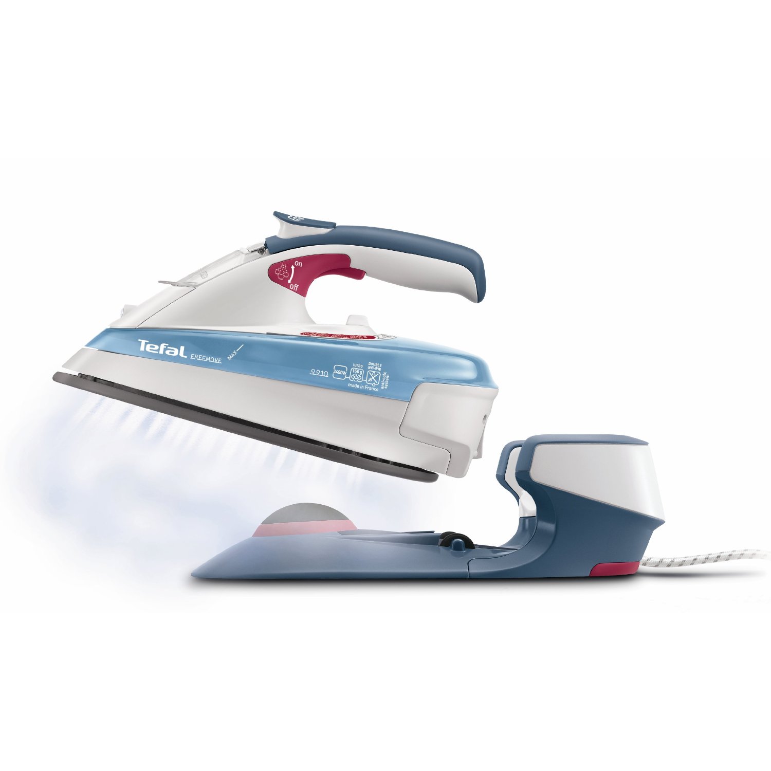 Endlich kabellose Bügeln – diesen Wunsch sicherlich nicht weniger Kunden macht das FV9110 Freemove wahr. Das aus dem renommierten Hause Tefal stammende Dampfbügeleisen wird zusammen mit einer kleinen Station ausgeliefert, auf der das Gerät in regelmäßigen Abständen aufgeheizt werden muss. Diese Unterbrechungen scheinen anfänglich etwas umständlich zu sein, ist aber, wie die ersten Kunden berichten, reine Gewöhnungssache.
