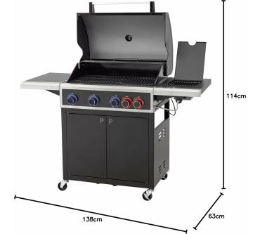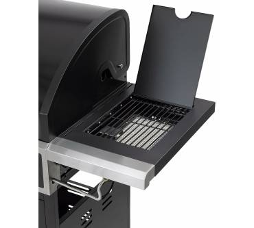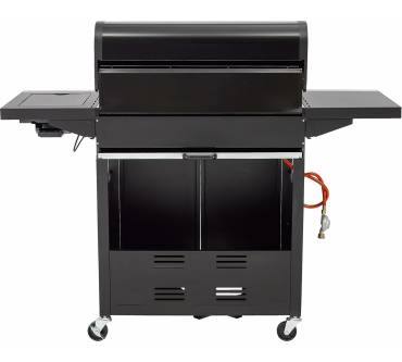 Die hochwertige Verarbeitung – etwa pulverbeschichtete Oberflächen und ein doppelwandiger Deckel – sorgt für Langlebigkeit, während das Design modern und durchdacht erscheint. Vier Lenkrollen, davon zwei mit Bremse, erleichtern die Handhabung. Für kleinere Stellflächen bietet die abklappbare Seitenablage einen praktischen Vorteil. Abgerundet wird die Ausstattung durch die integrierte Piezozündung, das Deckelthermometer und die Gasflaschenhalterung für unterschiedliche Größen.