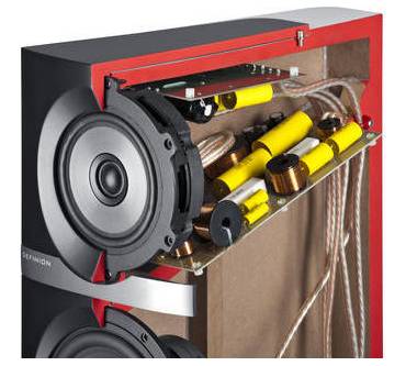 Für den unteren Frequenzbereich ab 42 Hertz sind drei 130 Millimeter-Tieftöner mit leichten Membranen aus eloxiertem Aluminium und Papierfasern zuständig, die zwecks hoher Präzision und größtmöglicher Belastbarkeit ebenfalls in einer geschlossenen Kammer verbaut wurden. Teufel hat gleich drei Tieftöner verbaut, um die Impulsgenauigkeit zu verbessern. Gefüllt wird die Kammer nicht mit Dämmmaterial von der Stange, sondern mit echter Schurwolle, was das „virtuelle Gehäusevolumen“ laut Teufel um gut zehn Prozent vergrößert. Die Trennfrequenz zwischen den Tieftönern und dem Mittelhochtöner liegt bei 350 Hertz. Damit sich die Resonanzen des Gehäuses nicht in Richtung Hörposition ausbreiten, ist die gewölbte Gehäusefront schwimmend gelagert. Von der Wölbung verspricht sich das Unternehmen eine Schallbündelung in vertikaler und eine breitere Abstrahlung in horizontaler Richtung, damit man seine Musik auch außerhalb vom Sweet Sport in bester Qualität genießen kann. Laut Datenblatt lässt sich der 21,8 Zentimeter breite, 109 Zentimeter hohe und 37 Zentimeter tiefe Standlautsprecher dauerhaft mit bis zu 250 und kurzfristig mit bis zu 350 Watt belasten. Die Impedanz liegt bei vier Ohm.„2,5 Jahre intensiver Entwicklung“ liegen hinter Teufel. Das Ergebnis kann sich sehen und – so das Fazit der Zeitschrift „Stereoplay“ - wohl auch hören lassen: Mit 57 von 70 möglichen Punkten bescheinigen die Experten der Definion 5 einen „Klang der absoluten Spitzenklasse“.