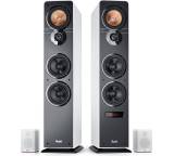 Beim Ultima 40 Aktiv Surround „4.0-Set“ von Teufel handelt es sich um eine Kombination der Aktiv-Lautsprecher Ultima 40 aktiv und zwei kleiner Rear-Boxen für Surround-Effekte. Dank der internen Verstärkung und der vielen Anschlüsse bieten Ihnen die Boxen sehr flexible Einsatzmöglichkeiten, sei es nun das Abspielen von Musik per Bluetooth von einem Smartphone (apt-X wird unterstützt), die Nutzung am Fernseher als Surround-Anlage über den HDMI-ARC-Eingang oder die Verbindung mit klassischen Audioquellen per analogem Cinch-Anschluss. Im Test von "MODERNHIFI.de" kann auch der Klang überzeugen - den Lautsprechern wird ein ausgeglichenes Klangbild mit druckvollen Bässen attestiert. Für das aktive Standlautsprecher-Paar werden rund 900 Euro fällig, für das Set mit Effektboxen rund 1.200 Euro, da kann man nicht meckern.