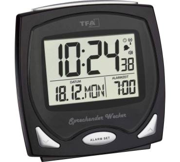 Insbesondere für Sehbehinderte und Blinde kommt der sprechende Funkwecker von TFA Dostmann infrage. Wahlweise auf Knopfdruck, stündlich oder zur vollen Stunde teilt er die Uhrzeit sowie auf Wunsch das Datum mit. Sie stellen ihn außerdem in zwei Lautstärken ein. Die Bedienung ist einfach: Ein Knopfdruck sagt die Uhrzeit, eine zweite das Datum an. Zum Wecken steht außerdem eine Snooze-Funktion zur Verfügung. Lediglich das Uhrzeitfeld kann für ältere Menschen schlecht erkennbar sein, obwohl es über ein fluoreszierendes Display verfügt. Die Nutzer zeigen sich in ihren Bewertungen dennoch überwiegend zufrieden und der Preis stimmt ebenfalls: Für rund 30 Euro wechselt der sprechende Wecker den Besitzer.