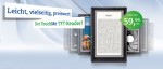 Mit dem TouchMe bietet die Buchhandelskette Thalia einen E-Book-Reader an, der für wenig Geld eine Bedienung über einen Touchscreen erlaubt. Das Gerät besitzt kein eInk-Display, sondern ein LCD, ist also hauptsächlich für die Nutzung in Innenräumen gedacht. Es kann außerdem Musik und Filme abspielen und geizt nicht mit Speicherplatz.