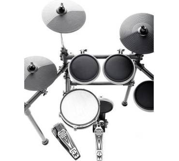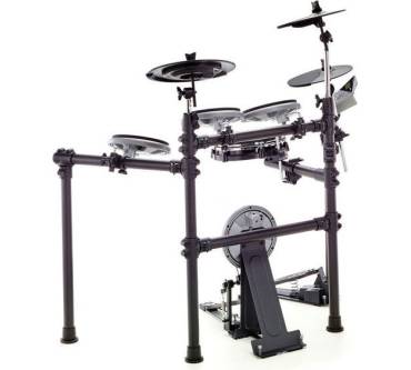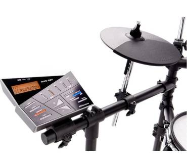 Stärken und SchwächenThomanns Hausmarke bringt mit dem MPS-425 ein erstaunlich gut klingendes E-Drum Set auf den überschwemmten Markt. Auf überzogen experimentelle Sounds wurde glücklicherweise verzichtet und amtliche Akustik-Sets an den Start gebracht. Das Funk-Kit beispielsweise klingt knackig, druckvoll und sehr authentisch. Einzelsounds lassen sich selektieren und speichern. Es sei vermerkt, dass insgesamt nur 5 Speicherplätze für eigene Presets zur Verfügung stehen. Das ist natürlich etwas mager, betrachtet man die üppigen 380 Sounds und 25 Drumkits. Die 82 Play-Along Songs sind ein nettes Bonbon, klingen dabei auch ordentlich und dienen als gute Grundlage zum Jammen. Das Spielgefühl der Gummi-Pads ist gut. Ein kleines Manko weist der unpräzise ansprechende Hi-hat Controller auf. Insgesamt wirkt das Set stabil und sieht dabei noch stylisch aus – der Controller erinnerte mich aufgrund seiner futuristischen Form an Raumschiff Enterprise. Also nicht uncool.