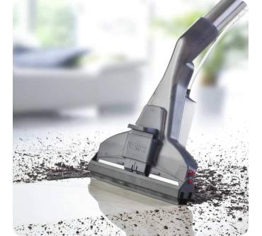 Der Nass-/Trockensauger von Thomas ist mit einem Wassertank ausgestattet, der Ihnen das Saugen und feucht Aufwischen in einem Arbeitsgang ermöglicht. Das Wischwasser wird nach dem Wischen wieder aufgesaugt und in einem 2,6 Liter fassenden Wassertank gesammelt. Der Wassertank ermöglicht Ihnen auch die Beseitigung nasser Verschmutzungen. Besonders empfehlenswert sei die Kombination der beiden Reinigungsmwthoden zur Pflege hochwertiger Parkett-Böden, so der Hersteller. Für intensive Verschmutzungen sind im Lieferumfang spezielle Tierhaar-Düsen enthalten. Auch eine Düse zur Nassreinigung von Polstermöbeln ist mit dabei. In Arbeitspausen stellen Sie den Sauger in zwei unterschiedlichen Parkpositionen ab. Die Kabelaufwicklung erfolgt, wie bei herkömmlichen Saugern auch, automatisch. Die Länge der elektrischen Zuleitung fällt mit 8 Meter durchschnittlich aus.
