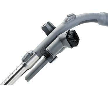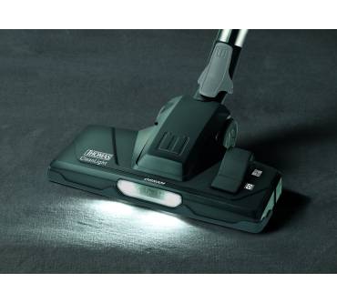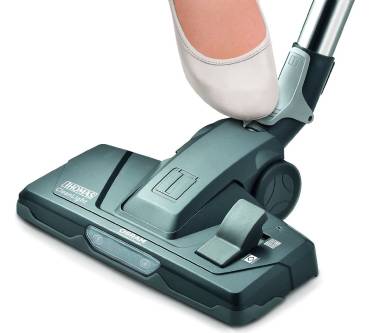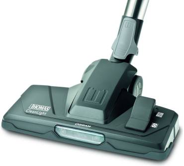 Allem Anschein nach hat diese Drosselung aber keine negativen Folgen für die Saugkraft. Denn auch bei der Überprüfung seiner Saugleistungen auf Hart-/Glattböden konnte der Thomas die höchste Auszeichnung, also eine Einstufung in die Klasse „A“, einfahren. Doch der Namenszusatz „parquet“ bezieht sich nicht allein auf diese Qualität. Sie resultiert vielmehr aus der speziellen Bodendüse für empfindliche Hartböden, die als Ergänzung zu einer Kombidüse zum Umschalten der Lieferung beiliegt. Die Düse geht zum Beispiel mit Parkettböden besonders schonend um. Die Umschaltdüse wiederum unterscheidet sich vom Standardmodell durch eine zusätzliche LED-Lampe, mit der dunkle, nicht so einfach einsehbare Stellen ausgeleuchtet werden können. Voll auf die Karte Komfort setzt der Hersteller beim Wechsel der Düsen. Mit einem einzigen Fußklick, also im Stehen, lässt sich die Düse entfernen und anschließend durch eine andere ersetzen.