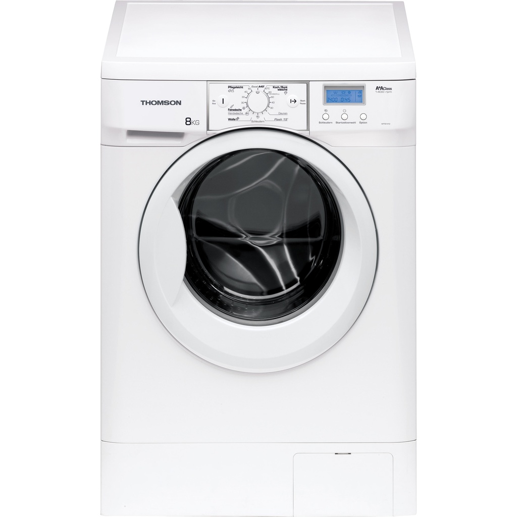 Die Ausstattung der Thomson WFT8141D ist sehr gut, so verfügt die Maschine über eine große Programmvielfalt. Zu dieser gehören unter anderem ein Daunenprogramm, Programme für empfindliche Materialien und mehrere Kurzprogramme. Etliche Zusatzoptionen, wie zum Beispiel die Option Bügelleicht, erweitern das Programm-Repertoire nochmals. Geschleudert werden kann mit maximal 1400 Umdrehungen pro Minute. Ein Vorteil der günstigen Thomson Waschmaschine ist zweifellos die bequeme Bedienweise, die unter anderem über ein großes Display vorgenommen wird. Hier kann neben den aktuellen Einstellungen auch die optional voreingestellte Startzeit oder auch die Restlaufzeit des Programms abgelesen werden.
