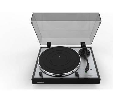 Die legendäre Plattenspieler-Marke steht für ostentativ robuste Chassis-Konstruktionen - und hochpräzise Laufwerke, bisher immer mit Riemenantrieb. Doch bietet Ihnen dieses neue Modell, erhältlich für einen nach Thorens-Maßstäben freundlichen Preis, unter dem großen Namen erstmals die Vorteile eines echten Direktantriebs. Welcher in Sachen Gleichlauf sofort punktet. Selbstverständlich macht sich durchgehend das exzellente Niveau der Verarbeitung bemerkbar, Komfort-Automatiken erleichtern den Abspiel-Alltag. Vielleicht werden Sie den vorinstallierten MM-Tonabnehmer Audio Technica AT-VM95E gegen ein noch wertigeres System austauschen wollen, was dank abnehmbarer Headshell unkompliziert gelänge. Weiterhin schwer akzeptabel erscheinen dürfte es einigen High-End-Puristen, dass man einen Phono-Vorverstärker integriert hat. Aber der gestattet Vinyl-Pragmatikern das direkte Andocken des Drehers an normale Hochpegel-Eingänge. Und ist ja abschaltbar.