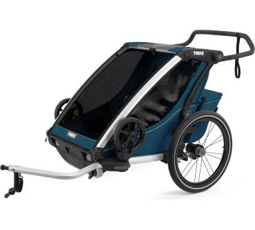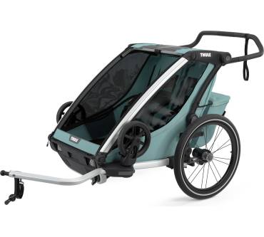 Wie der Vorgänger (Testsieger bei Stiftung Warentest) kann die 2021er-Version des Thule Chariot Cross 2 auch als Joggingtransporter und Buggy eingesetzt werden. Mit dabei ist ein Standard- und ein Komfort-Paket, um den Anhänger an viele mögliche Einsatzzwecke anzupassen. Ausgelegt ist der Anhänger für bis zu zwei Kinder mit einem Gewicht von jeweils 22 Kilogramm. Der hintere Laderaum ist einklappbar, damit Sie etwa beim Joggen mehr Beinfreiheit genießen können.