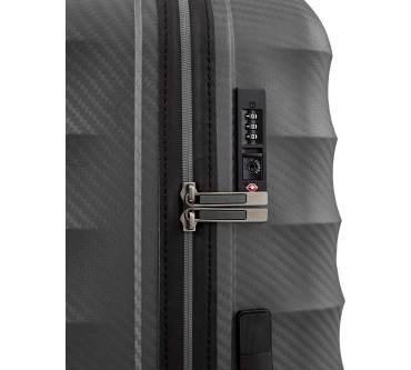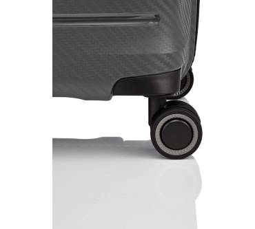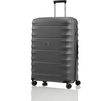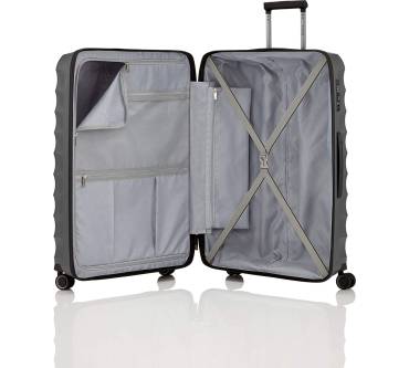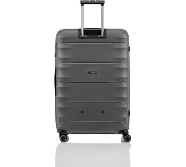 Mit einer Hartschale aus dem strapazierfähigen Kunststoff Polypropylen soll der Trolley namens Titan Highlight L viele Reisen auf der Schiene oder in der Luft mitmachen. Er ist mit weniger als 3,5 Kilogramm nicht zu schwer für die Größe. Immerhin beträgt sein Volumen 107 Liter. Zum komfortableren Ziehen oder Schieben ist er mit vier Rollen und einem Teleskopgriff versehen. Laut Kunden sind die Rollen leichtgängig und leise. Der Innenraum ist gefüttert sowie auf einer Kofferseite mit Deckel und auf der anderen mit einem Spanngurt versehen. Für kleine Accessoires gibt es drei Reißverschlusstaschen. Bei dem integrierten Zahlenschloss handelt es sich um ein TSA-Schloss. Dieses kann bei Flugreisen vom Zoll im Verdachtsfall mit einem Generalschlüssel geöffnet werden. Schloss oder Koffer werden dadurch nicht zerstört.
