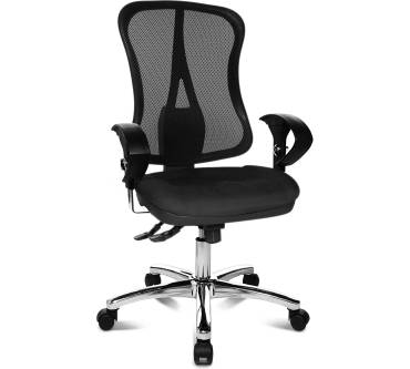 Topstar hat mit dem Drehstuhl Head Point SY Deluxe ein Modell mit solider Ausstattung im Programm. Es bietet eine Synchronmechanik, die dynamisches Sitzen unterstützt. Sitz und Rückenlehne folgen Ihren Bewegungen in einem bestimmen Winkelverhältnis. Beim Zurücklehnen streckt sich Ihr Körper, was eine bessere Durchblutung sowie Streckung des Körpers zur Folge hat. Der Hersteller empfiehlt den Stuhl für eine maximale Nutzung von acht Stunden, was aufgrund der Technik sowie des Muldensitzes komfortabel sein dürfte. Außerdem lassen sich die Armlehnen in der Höhe verstellen und damit auf Ihre Bedürfnisse anpassen. Im Test des Magazins „Guter Rat“ war dies jedoch recht umständlich. Ein Pluspunkt ist wiederum die Netzrückenlehne, die eine gute Unterstützung und Belüftung vor allem im Sommer gewährleistet. Für einen Preis von rund 210 Euro erhalten Sie hier eine gute Leistung.