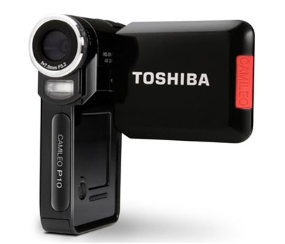 Der Toshiba Camileo P10 löst zwar mit einem 5-Megapixel-CMOS-Sensor Videos in High Definition auf (1080p), besitzt jedoch ein Objektiv ohne Zoom. Das Objektiv ähnelt eher der Linse einer Webcam oder eines Handys und begrenzt die Bildqualität. Ein 4faches digitales Zoomen ist möglich – durch die digitale Berechnung des Zooms nimmt die Bildqualität jedoch nochmals ab. Auch Fotos können mit dem kompakten Camcorder aufgenommen werden, die in maximal 3200 x 2400 Bildpunkte aufgelöst werden. Der P10 speichert auf SD-Karte und verfügt auch über internen Speicher, der 128 Megabyte fasst. Er besitzt einen 2,5 Zoll großen Monitor zum Ausklappen. An Bord sind auch einige Motivprogramme, die die Bildqualität verbessern sollen.