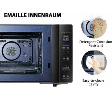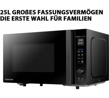 Die Toshiba Mikrowelle mit Grill und Heißluft bietet eine Vielzahl von Funktionen, darunter eine Heißluftfunktion, die Speisen mit weniger Fett zubereitet. Gleichmäßiges Erhitzen und präzises Auftauen dank Inverter-Technologie sind weitere Pluspunkte. Das Design überzeugt mit einer mattschwarzen Oberfläche und hochwertigen Bedienelementen, der Innenraum ist mit kratzfester Emaille leicht zu reinigen.