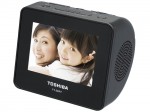 Der TY-SDP7 jedoch ist natürlich wesentlich kleiner und misst gerade einmal 100 mal 70 mal 96 Millimeter (auf die Waage bringt er ein halbes Pfund). Doch in das knuffige Gehäuse hat Toshiba eine ganze Menge an Funktionen hineingepackt: So ist der TY-SDP7 ein digitaler Bilderrahmen mit einer Displaygröße von 3,5 Zoll und einer Auflösung von 320 x 240 Pixeln. Die Bilder (JEPG) wiederum kommen über den SD(HC)-Kartenleser (maximal 16 GB) auf das Gerät, und mit ihnen auch MP3s, die die Audio Foto Box auch abspielen kann. Außerdem empfängt er Radiosender (FM), erfüllt schließlich noch einen Zweck als Wecker und mahnt mit seiner Kalenderfunktion an die tagsüber ausstehenden Termine.