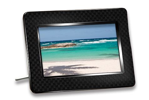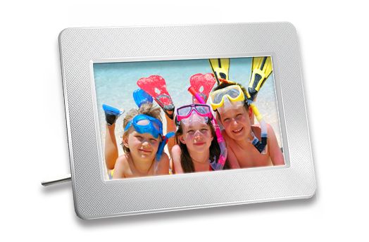 Der digitale Bilderrahmen PF700 von Transcend stellt Fotos im Breitwandformat 16:9 dar. Er besitzt keinen internen Speicher, sondern wird von allen gängigen Speicherkarten mit Fotos versorgt (SD, SDHC, MMC, MS). Auch über den USB-Stick können Bilder auf sein TFT-Display gelangen. Die Auflösung des sieben Zoll großen Bilderrahmens beträgt lediglich 480 x 234 Pixel. Dieser Wert ist vergleichsweise niedrig und minimiert die Bildqualität: Die Fotos sehen – vor allem von Nahem – grobkörnig und unscharf aus.