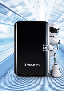 Von außen betrachtet präsentiert sich die StoreJet 25D2 als Schönling in einem schwarzen Klavierlackfinish. Doch die externe Festplatte von Transcend versteht es trotzdem, ihren empfindlichen Inhalt angemessen zu beschützen, wenn das Gerät einmal unabsichtlich vom Tisch fällt oder etwas heftiger angestoßen wird. Schäden oder Kratzer an der schönen Außenhaut sollten dabei die einzigen nachteiligen Folgen sein, denn ein internes Federungssystem weiß es zu verhindern, dass die Festplatte selbst Schaden nimmt.
