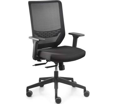 Trendoffice integriert in den Drehstuhl to-sync die wichtigsten ergonomischen Features für gesunden Sitzkomfort. Dazu gehört insbesondere eine Synchronmechanik, die Ihre Bewegungen nach vorne und hinten unterstützt. Lehnen Sie sich zurück, gehen Sitz und Lehne mit. Das reduziert den Druck auf Ihre Bandscheiben und entlastet folglich Ihren Rücken. Der Hersteller paart die Mechanik mit einem tiefenverstellbaren Sitz, den Sie an Ihre Beinlänge anpassen. Die Lordosenstütze in der Rückenlehne fördert eine aufrechte Haltung. Die Lehne ist mit einem Netzgewebe versehen, die Unterstützung und Belüftung in einem bieten. Das ist speziell an warmen Tagen angenehm. Ab Werk sind schließlich Armlehnen mit im Paket, die Sie je nach Ausführung in Höhe, Tiefe und Breite verstellen können. Das maximale Nutzergewicht beträgt 125 Kilogramm und übertrifft damit den Durchschnitt. Die meisten Drehstühle in diesem Segment halten 110 bis 120 Kilogramm stand. Im Durchschnitt kostet dieses Modell rund 300 Euro und damit für die Ausstattung nicht viel.