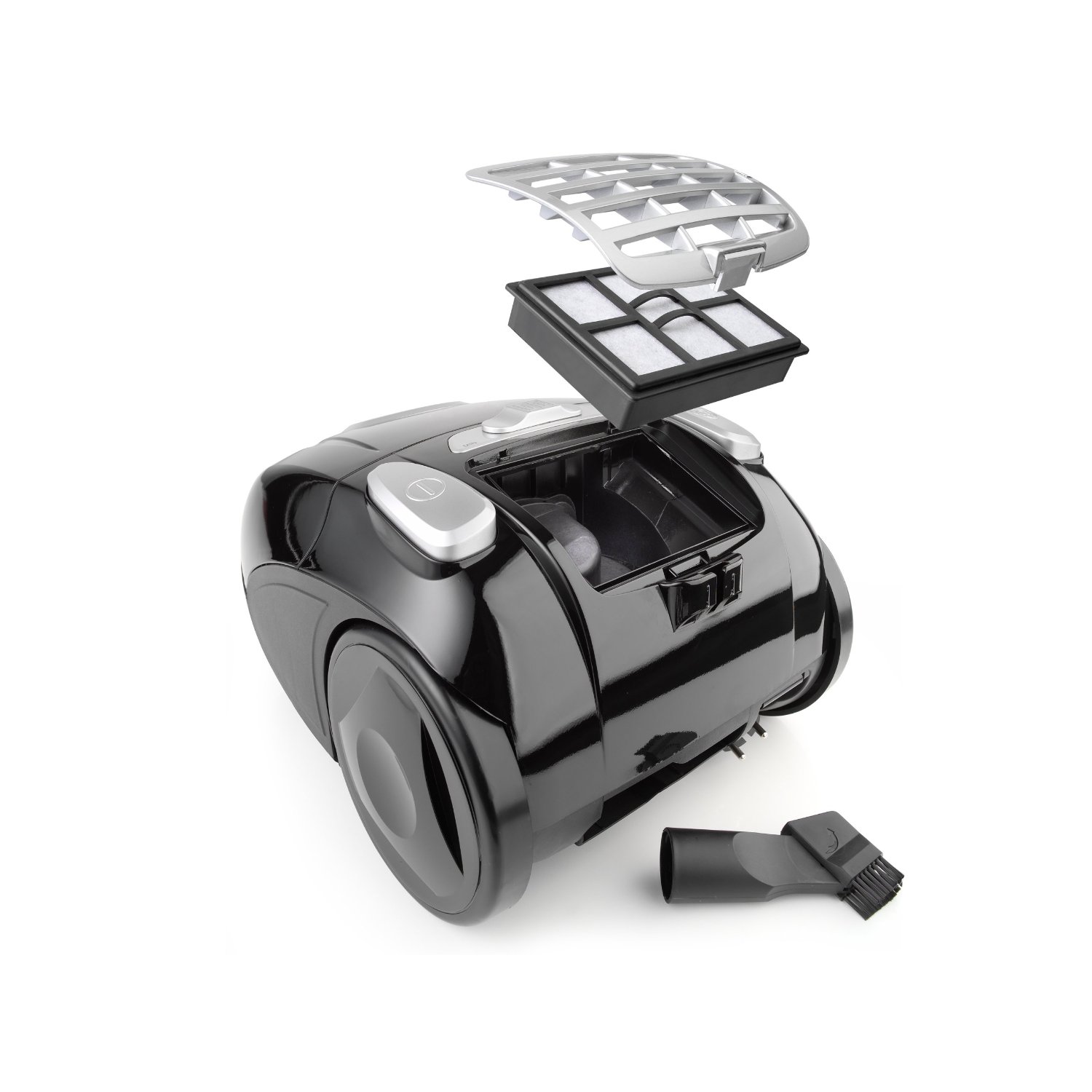 Das Volumen des Staubbeutels wiederum lässt vermuten, dass der Staubsauger speziell für große Wohnflächen gedacht ist. Es beläuft sich nämlich auf satte 4,5 Liter. Der Aktionradius kann damit allerdings nicht mithalten. Mit fünf Metern Länge ist das Netzkabel etwas zu kurz für einen Staubsauger für XL-Zimmer geraten. Nach dem Drücken des Startknopfs hört sich der Tristar dank Softanlauf zuerst relativ zahm an, steigert aber schnell seinen Geräuschpegel auf bis zu 82 Dezibel auf höchster Saugstufe – viele empfinden dies rein subjektiv als „Lärm“. Dafür kann dem Tristar auf keinem Fall abgestritten werden, dass er leicht ist. Sechs Kilogramm lassen sich für die meisten locker über Treppen in die zweite Etage schleppen.