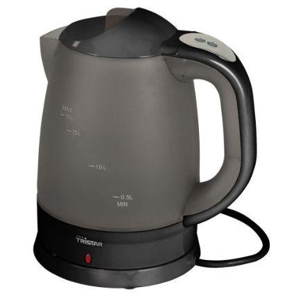 Für einen sehr kleinen Preis von circa 12 Euro bekommt man mit dem Tristar WK-3355 einen Wasserkocher mit durchschnittlichem Komfort. So hat der Sockel des kabellosen Gerätes einen Zentralkontakt, durch den der Kocher aus allen Richtungen aufgestellt werden kann. Und für gute Hygiene sorgen das verdeckte Heizelement und der herausnehmbare Kalkfilter, der Kalkpartikel zurück hält. Insgesamt können mit dem Gerät 1,7 Liter Wasser gekocht werden. Durch das graue, semitransparente Material könnte das Ablesen der Skala aber erschwert werden. Leider liegt die Mindestfüllmenge, wie bei sehr vielen Geräten, bei 0,5 Litern. So ist das Kochen einer Tasse Tee ohne Überschuss nicht möglich.