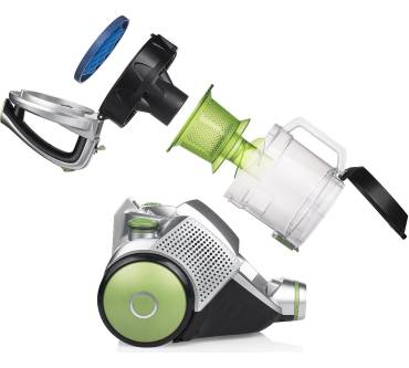 „Plus: niedrigste Leistungsaufnahme auf max. Saugkrafteinstellung, direkte Entleerung des Staubbehälters.