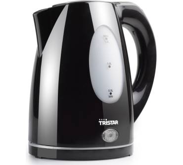 Wie nahezu alle aktuellen Wasserkocher ist auch der Tristar mit einem verdeckten Heizelement ausgestattet, das heißt, die Heizwendel ist unter einer Edelstahlplatte versteckt. Das restliche Gehäuse wiederum besteht nicht aus Metall, sondern aus Plastik, was sicherlich bei einigen Kunden Skepsis hervorrufen wird. Es ist nämlich leider oft so, dass dieser Wasserkochertyp zumindest anfänglich unangenehm nach Plastik oder „Chemie“ riecht, mit der Zeit legt sich diese Begleiterscheinung jedoch meist. Beim Tristar wiederum scheint das Phänomen gar nicht erst aufzutreten, bislang sind in dieser Hinsicht nämlich noch keine Beschwerden vonseiten der Kunden laut geworden. Die üblichen Sicherheitsfunktionen wie zum Beispiel der Trockengehschutz sind alle vorhanden, der Deckel wiederum öffnet sich auf Knopfdruck, die dafür vorgesehene Taste findet sich gut erreichbar für den Daumen am Griff. Die Wasserstandanzeige ist leider nur einseitig angebracht – weniger optimal für Linkshänder –, die Kabelaufwicklung sorgt für Ordnung. Auf der Basisstation soll der Tristar fest und stabil sitzen, das heißt, Wackler und Ruckler, sobald sich das Wasser dem Siedepunkt nähert wie bei einigen anderen Low-Budget-Modellen sind beim Tristar Fehlanzeige. Das Ausgussverhalten der Schnaupe schließlich soll ebenfalls gut sein, Nachkleckern oder Tröpfeln scheint eher die große Ausnahme zu sein.