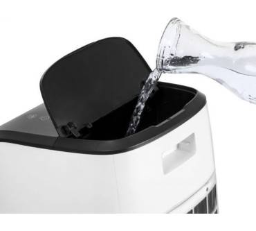 Der Luftkühler von Trotec sorgt an heißen Tagen nach dem Prinzip der Verdunstungskälte für Erfrischung in Ihren Räumlichkeiten. Pro Stunde werden bis zu 2 Liter Wasser an die Raumluft abgegeben. Damit hält der Verdunster einige Leistungsreserven für Sie bereit, um auch größere Räume über einen längeren Zeitraum hinweg mit einer frischen Brise zu versorgen. Der Wasserbehälter fällt entsprechend der Verdunstungsleistung mit 20 Liter Volumen ebenfalls großzügig aus. Muss Wasser nachgefüllt werden, können Sie den Wasserbehälter bequem an der Oberseite des Gerätes öffnen. Bedient wird der Luftkühler wahlweise über das Bedienfeld am Gerät oder eine im Lieferumfang enthaltene Fernbedienung. Um einen möglichst weiten Bereich mit Frischluft zu versorgen, ist das Gerät zudem mit einer Swing-Funktion ausgestattet.